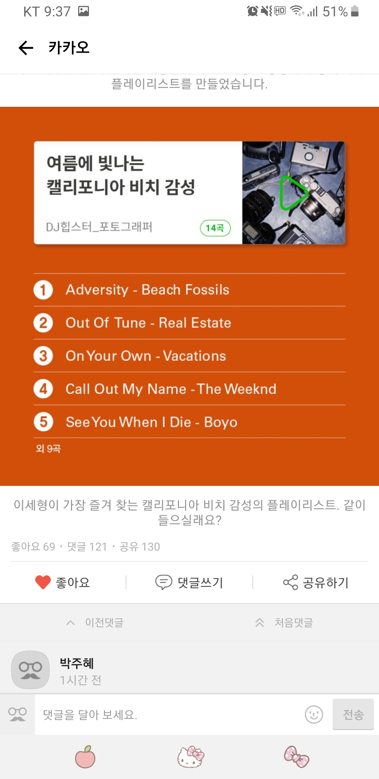 카카오 배너 - DJ힙스터즈 이름이 걸린 플레이리스트를 어찌 클릭하지 않을 수 있겠소.