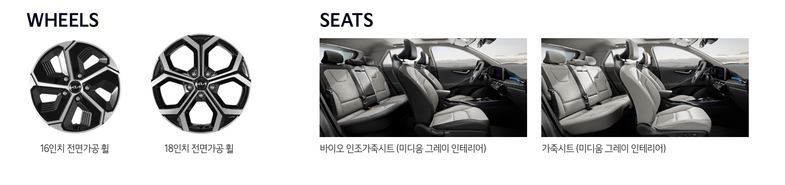 - 휠 디자인: 효율성을 최우선 가치로 삼는 파워트레인 구성, 공력 성능을 극대화한 디자인, 그리고 자연에서 영감을 받은 소재 등이 니로 하이브리드의 성격을 잘 드러냅니다.