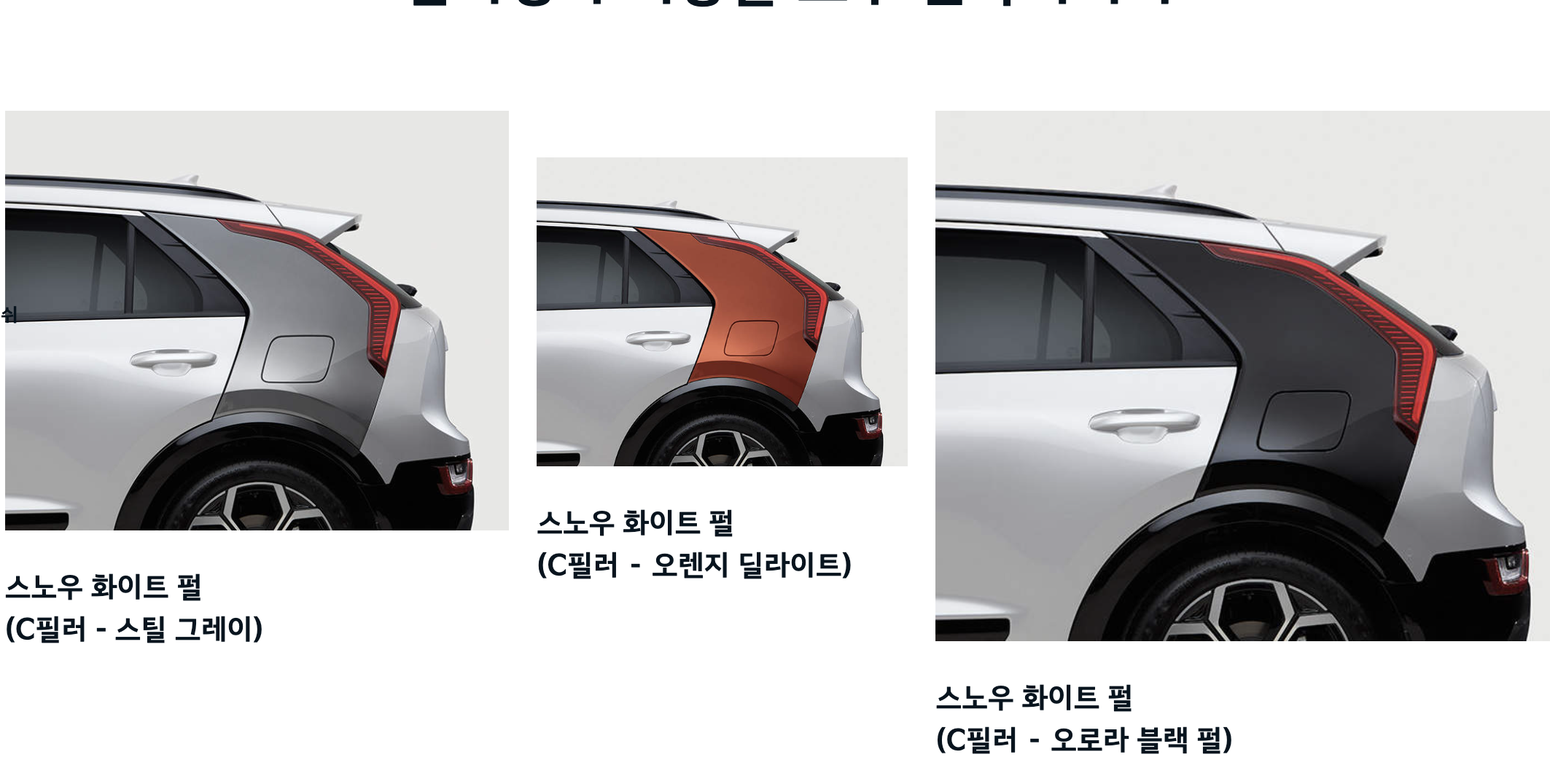 - 테일라이트: C필러와 후면 펜더의 디자인은 마치 부메랑 형태로 디자인되어 있으며, 차체 색과는 다른 색으로 처리되어 있어 눈에 띕니다.