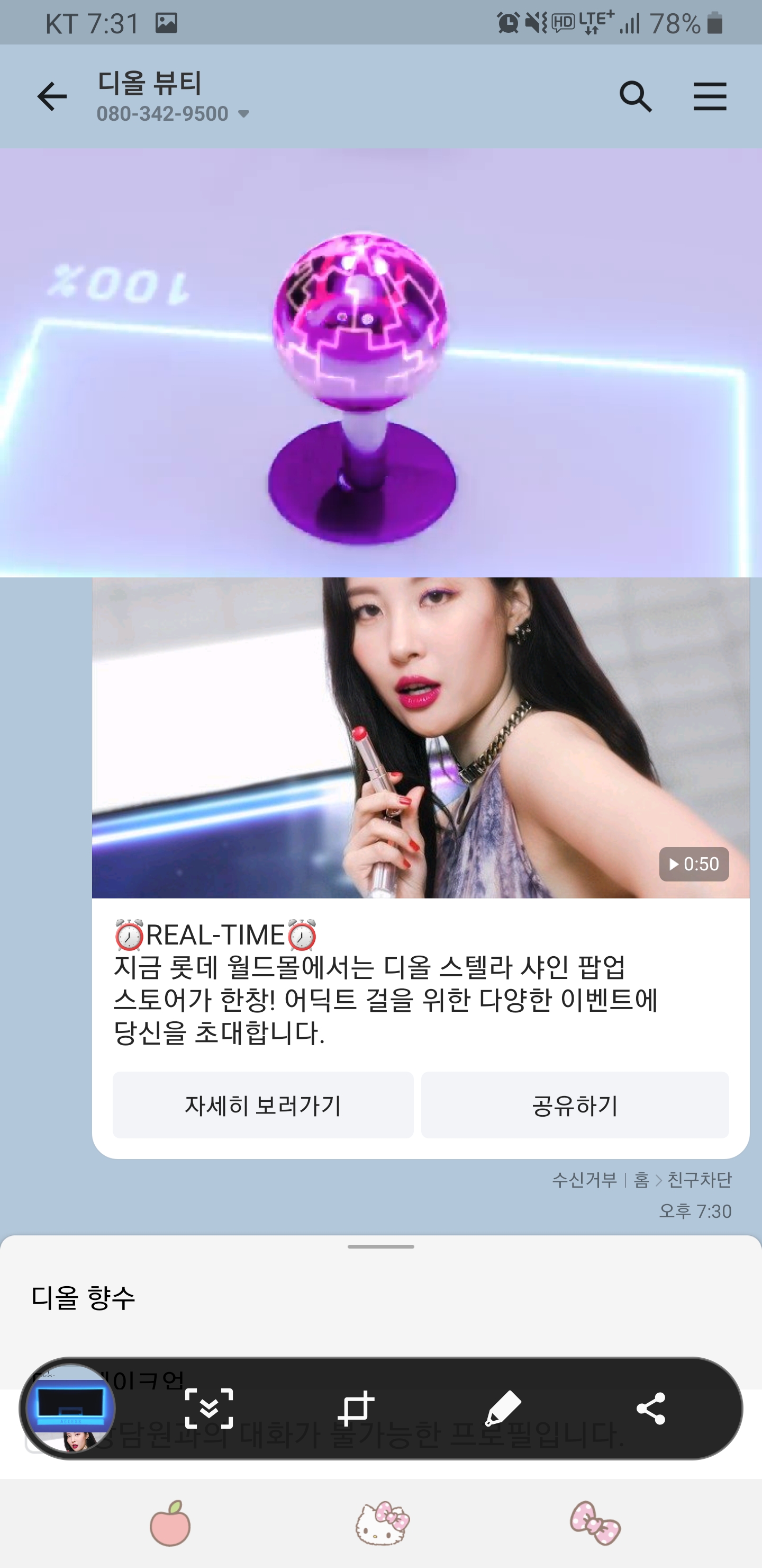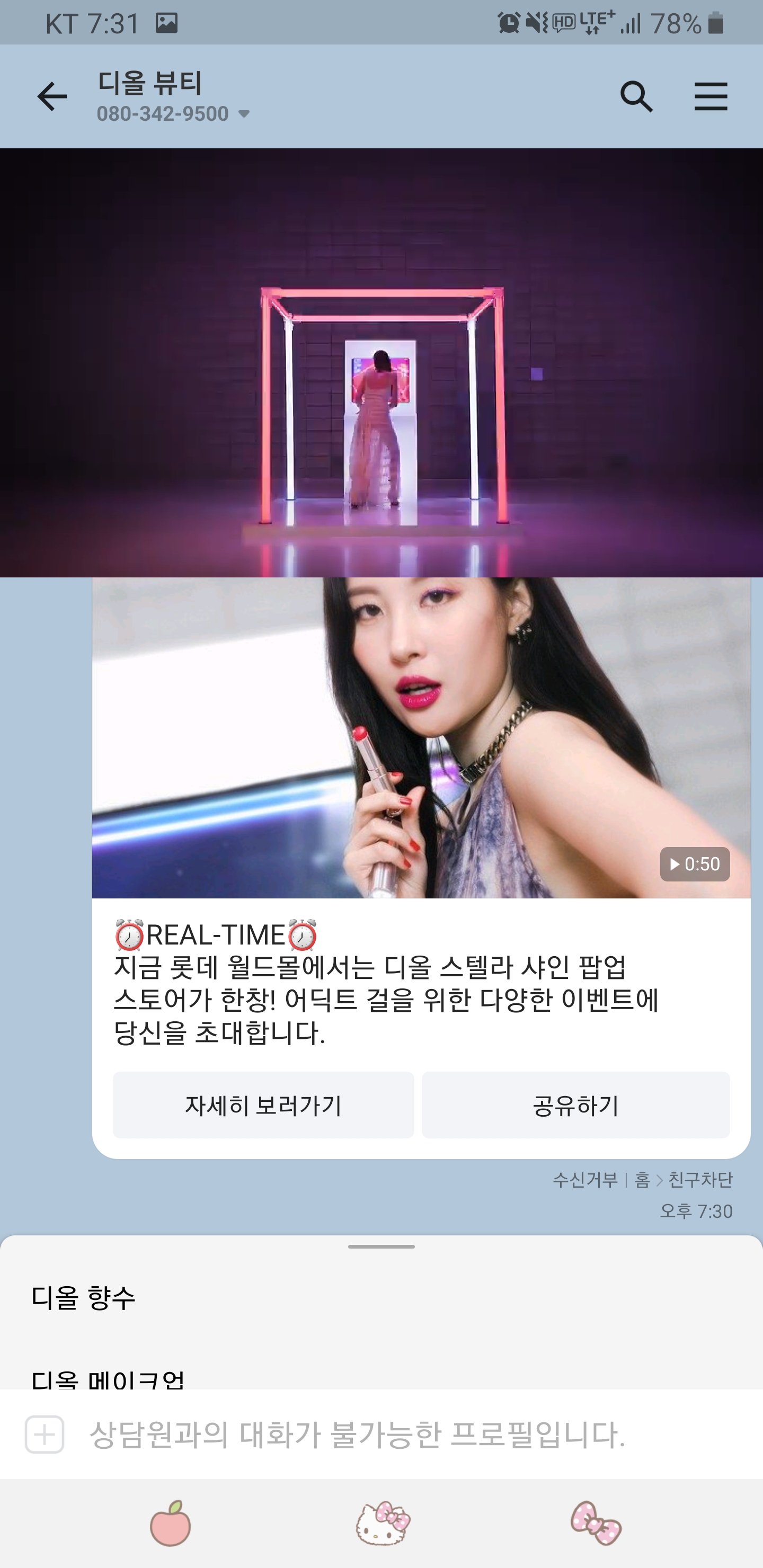 디올 뷰티의 카카오 메세지 - 안 열어 볼 수 있겠어?
