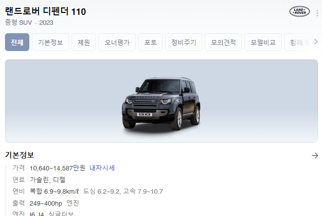 디펜더와 비교해보고 포드와도 비교해보겠습니다.