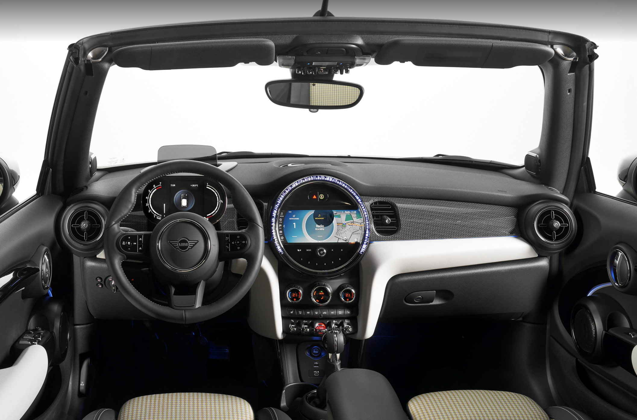 미니쿠퍼 컨버터블만의 독특한 특징으로는 다이얼 타입의 헤드램프 조절, 당기는 방식의 사이드 브레이크, 눈에 잘 띄는 빨간색 버튼시동 스위치 등이 있어 사용자에게 색다른 경험을 선사합니다.