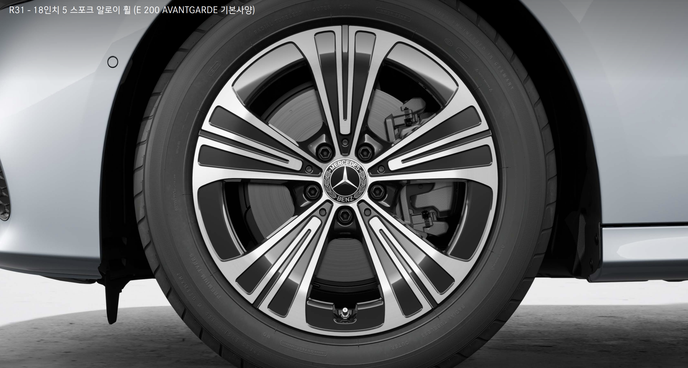 - 신형 E클래스에는 다양한 휠 디자인 옵션이 제공됩니다.