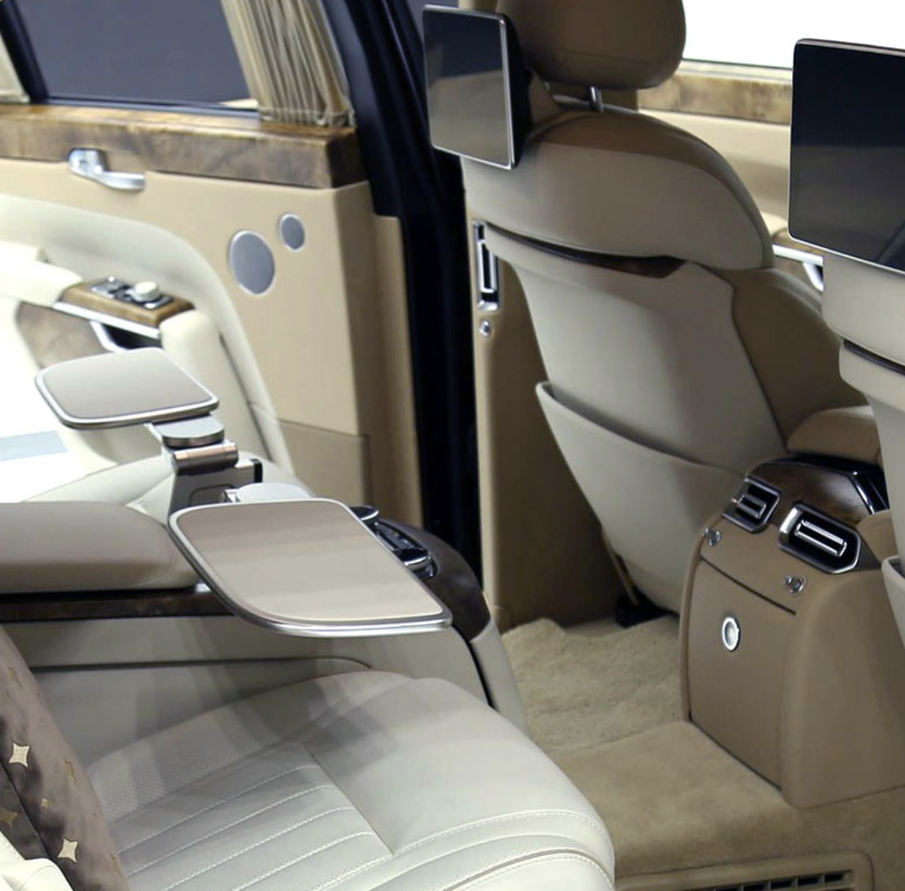 - 차체 디자인: 긴 휠베이스 앞뒤 문 사이에 추가적인 차체 패널이 있으며, 그 사이에 창문이 배치됩니다. 모든 좌석, 도어 패널, 암레스트는 맞춤 제작됩니다.