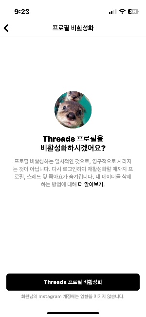 스레드는 탈퇴가 조금 까다로운 것 처럼 보이는데요. 탈퇴라기 보다 원래 인스타그램 계정에 새로운 기능을 추가한것이기 때문에 쓰레드만 단독 탈퇴는 안됩니다. 그냥 쓰레드 기능을 비활성화 하는 거죠.