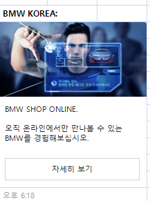 오늘의 마케팅리뷰 온라인에서의 브랜드 체험관 마케팅 바다를 유영하는 마케팅고래 2020. 5. 23. 20:28 반응형 사실 브랜드를 전하기에 조금은 제한적일 수 있는 온라인에서 BMW가 브랜드를 체험하게끔 하는 방법. https://shop.bmw.co.kr/#/ BMW SHOP ONLINE shop.bmw.co.kr 웹제작을 배워야겠다. 반응형