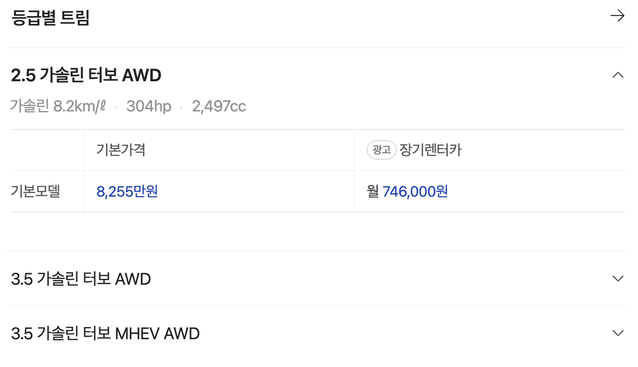 - 3.5 터보 48V 슈퍼차저 가격: 91,900,000원