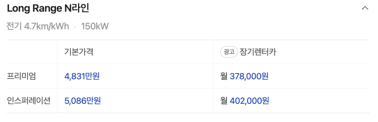 - 디자인 요소: 전면 픽셀화된 LED 램프, 풀 LED 헤드램프, N 퍼포먼스 부품이 특징
