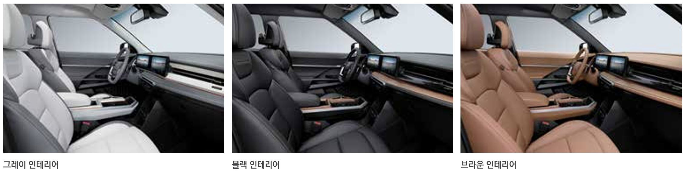 토레스 EVX는 현대적이고 넓은 실내 공간, 고급 편의 기능, 강력한 성능, 안전한 운전 지원 시스템을 갖추고 있어, 운전자와 탑승자 모두에게 최상의 경험을 제공합니다. 내부 색상 옵션으로는 브라운, 블랙, 그레이가 있으며, 그레이 인테리어는 차분한 분위기를 위한 그레이 필러를 포함합니다.