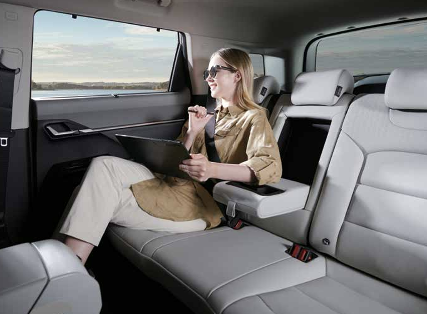 - 좌석: 편안한 장거리 운전을 위한 견고한 지지와 6:4 접이식 리클라이닝 기능 제공. 옷걸이형 헤드레스트와 피크닉 테이블 기능도 포함