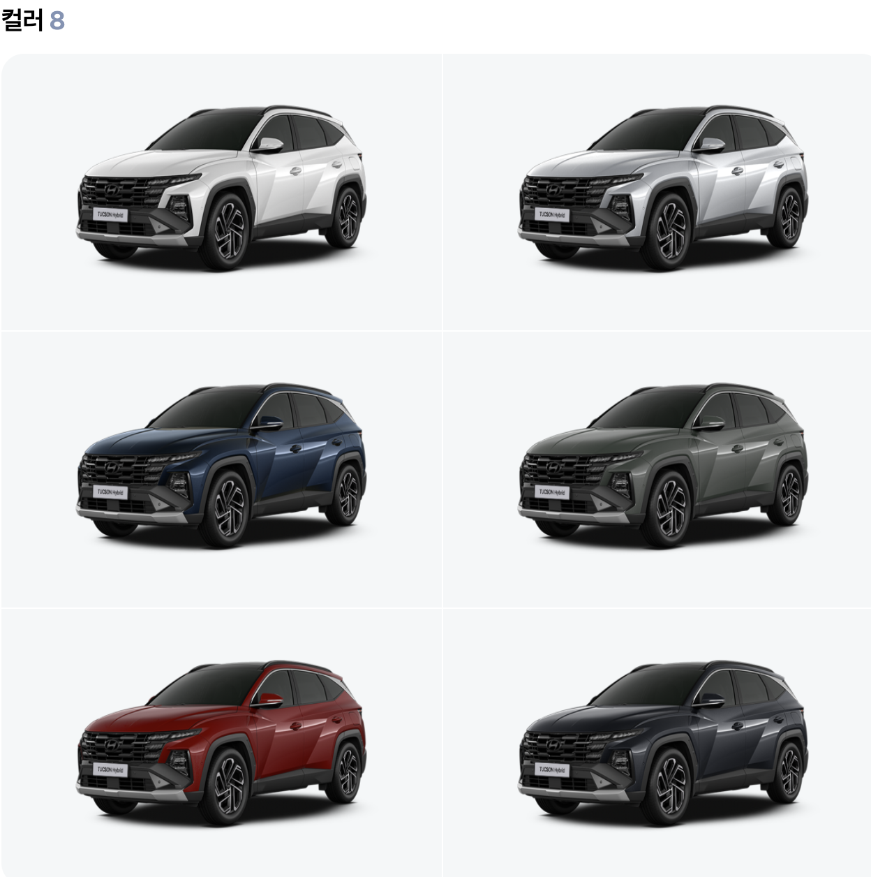 - 주요 특징: 투싼하이브리드는 스마트스트림 가솔린 1.6 터보 하이브리드 엔진을 탑재하여 우수한 연비와 성능을 자랑합니다. 또한, 다양한 안전 기술과 편의 사양을 갖추고 있어 사용자의 만족도를 높입니다.