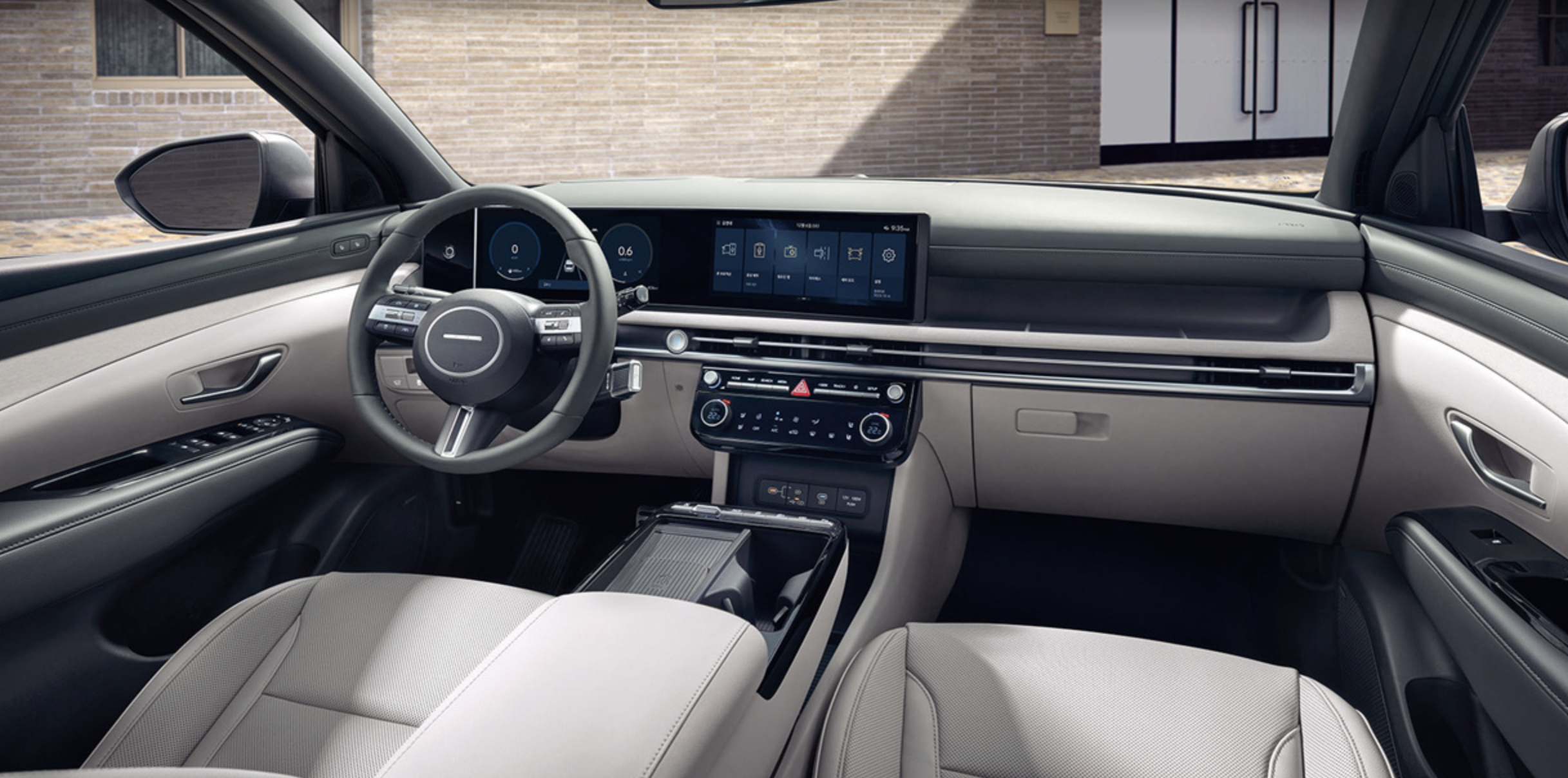 - 러기드한 디자인: 투싼하이브리드는 러기드한 디자인과 스포티한 캐릭터 라인으로 다이내믹한 스타일을 강조합니다.