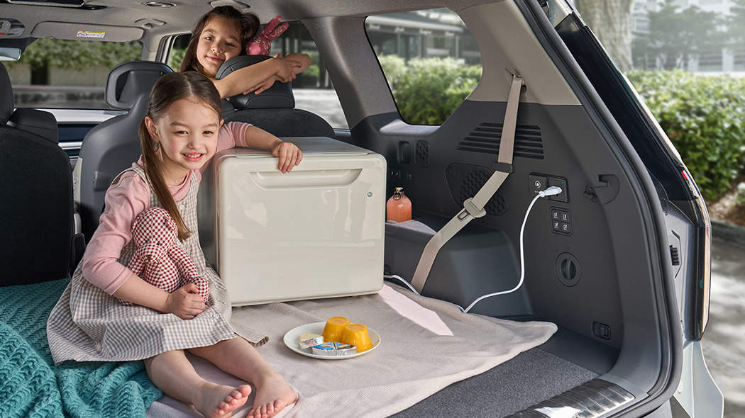 EV9은 7인승 또는 6인승으로 선택할 수 있으며, 2열과 3열 시트를 폴딩하면 넓은 러기지 공간을 확보할 수 있습니다. 또한, EV9은 실외 V2L 커넥터를 통해 외부 전기기기를 연결하고 사용할 수 있습니다. EV9은 기아 순정 액세서리로 캠핑 패키지를 제공하며, 이에는 텐트, 테이블, 의자, 쿨러백, 랜턴 등이 포함됩니다. EV9과 함께 캠핑을 즐겨보세요. 🏕