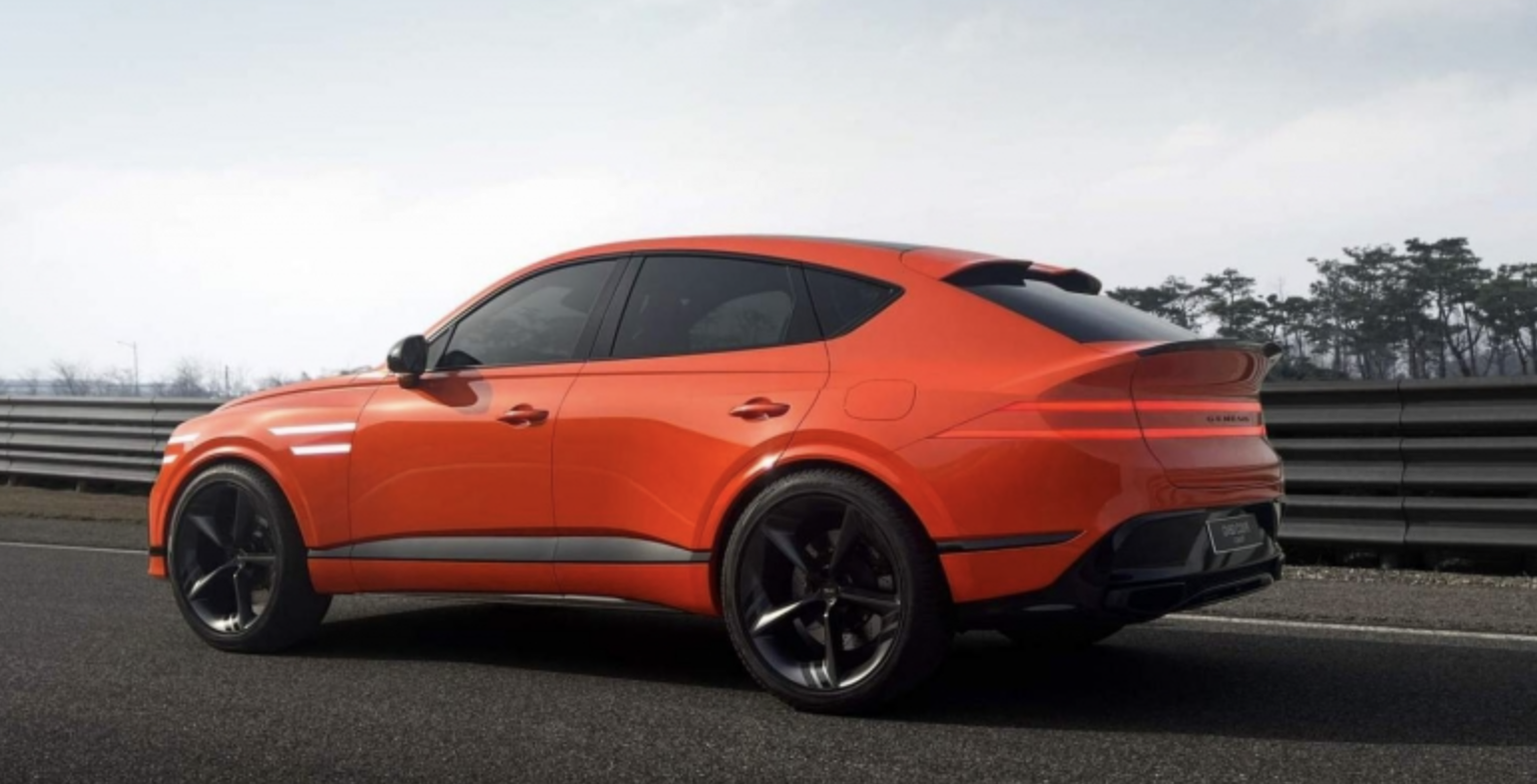 GV80 쿠페는 GV80의 루프 라인을 부드럽게 다듬은 쿠페형 SUV로, GV80 페이스리프트 디자인과 유사한 특징을 갖추고 있습니다.