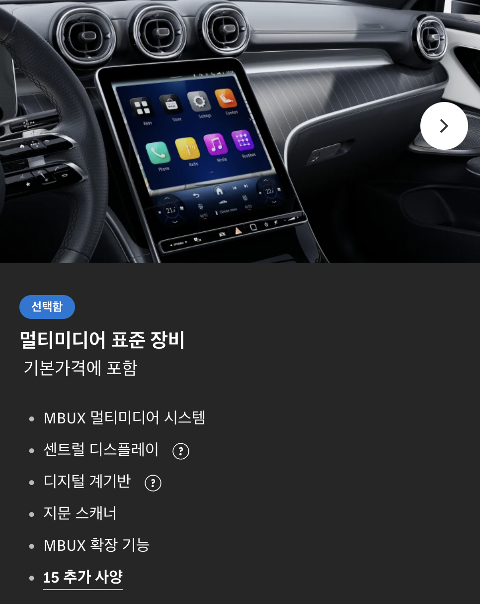 - 멀티미디어 및 연결성: 최신 MBUX 인포테인먼트 시스템, 대형 터치스크린 디스플레이, 스마트폰 연결성, 고급 오디오 시스템 등