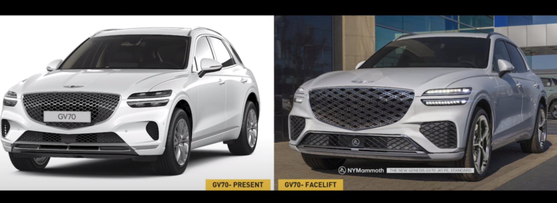 제네시스 GV70 페이스리프트 모델에서는 외관 디자인의 변화가 예상되며, 특히 크레스트 그릴, 헤드램프, 테일램프 디자인 등이