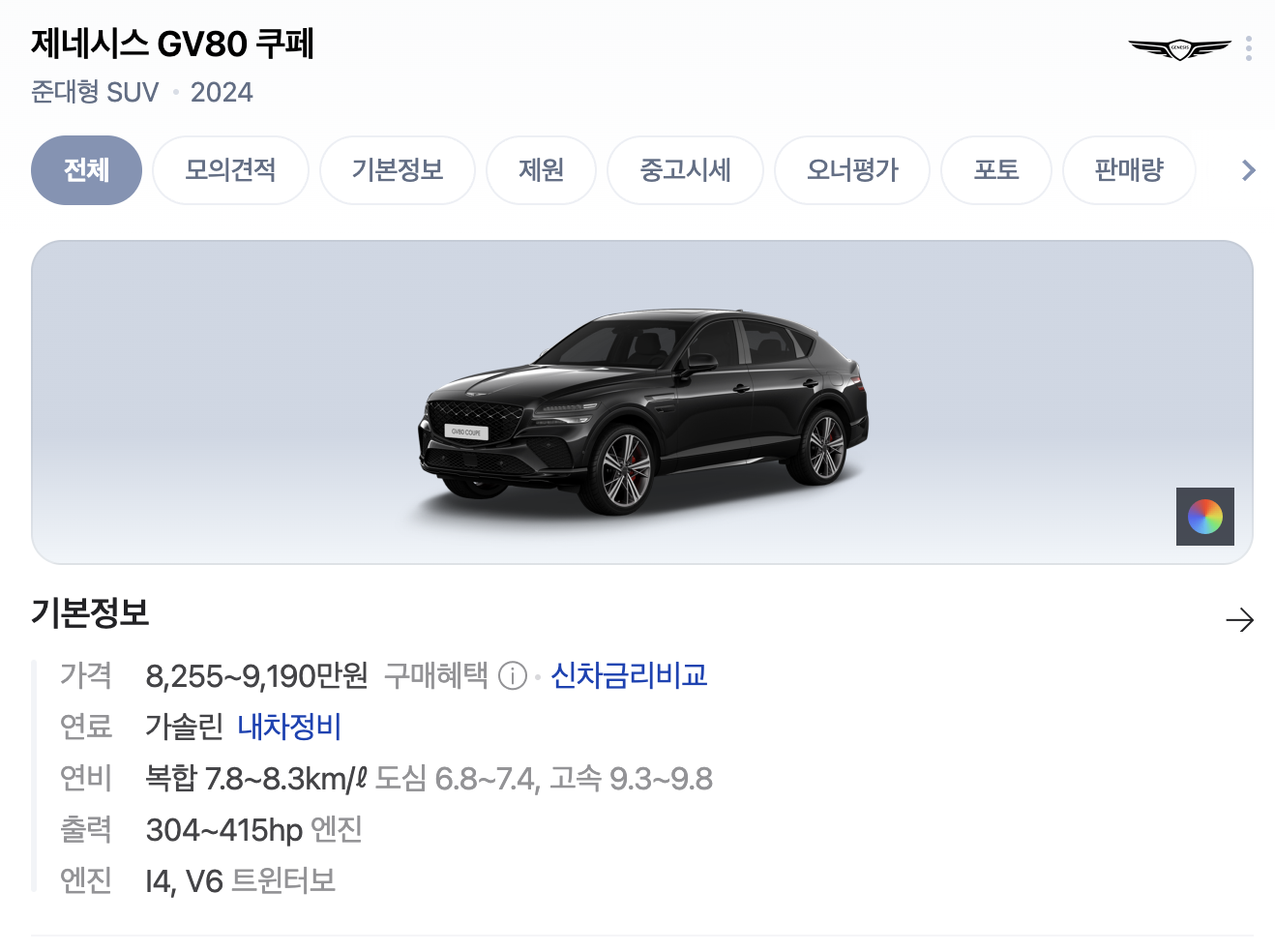 - 모델: GV80 쿠페