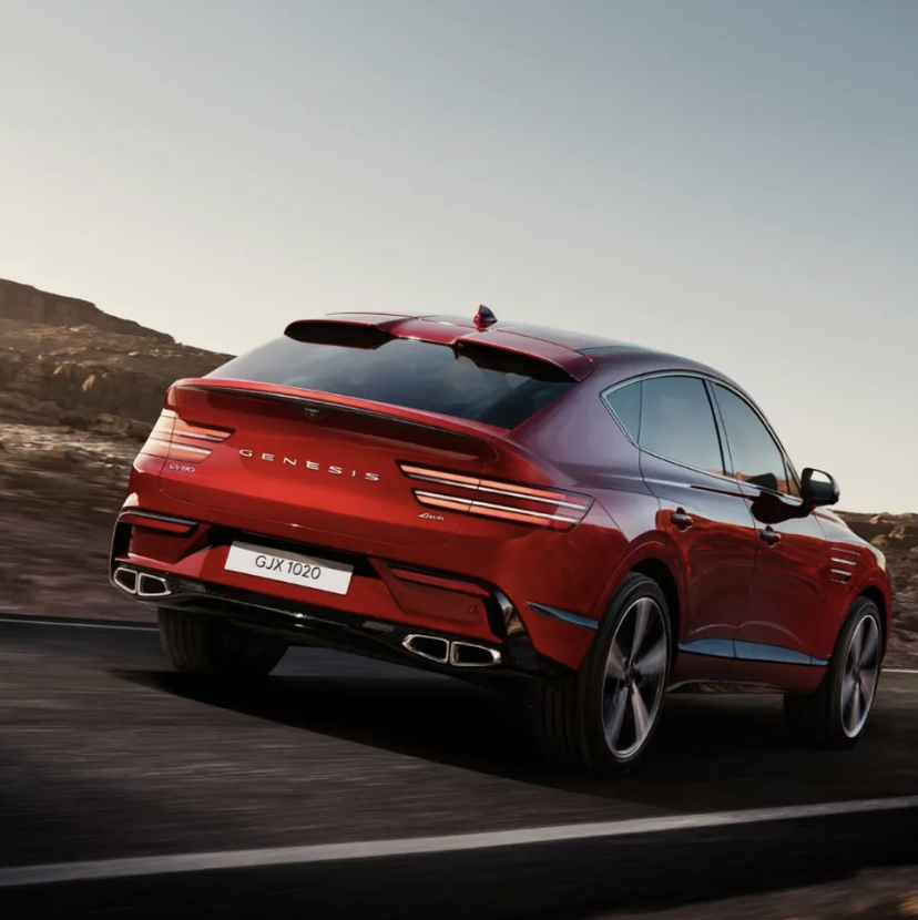 - 후면 디자인: 쿠페는 G80처럼 상단 테일 램프를 더 긴 형태로 디자인하고, SUV 모델과 차별화를 위해 범퍼 하단에 이중 오각형 모양의 머플러 팁을 적용했습니다.
